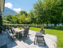 "Deluxe Apartment Village", apt 4 pièces 65 m2, au rez-de-chaussée. Aménagement agréable: séjour/chambre à coucher avec 1 divan-lit double, table pour les repas et TV. Sortie sur le jardin. 1 chambre double. 2 chambres, chaque chambre avec: 2 lits. Cuisine ouverte (Poêle à gaz, 4 feux, four micro-ondes, cafetière électrique). Douche/WC. Chauffage au gaz. Possibilité de chauffage uniquement du 15.10. au 15.04. Sol en pierres naturelles. Terrasse, jardin. Meubles de terrasse. Vue partielle sur le lac. A disposition: chaise haute pour enfant, lit bébé jusqu'à 2 ans (en sus). Internet (Connexion WIFI, gratuit). Maximum 2 animaux/ chiens autorisés. Cette location est un exemple de location / d'appartement. CIR: 013189-RTA-00005- Installations
