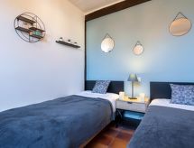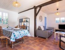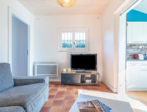 Maison 3 pièces 65 m2. Rénovée en 2021, aménagement confortable et plaisant: séjour/salle à manger avec TV (satellite) et chaînes de TV internationales (écran plat), radio et DVD. Sortie sur la terrasse. 1 chambre avec 1 grand-lit. 1 chambre avec 2 lits (90 cm, longueur 190 cm). Petite cuisine (mini-four, lave-vaisselle, 3 feux, four micro-ondes, cafetière électrique, Capsules pour machine à café (nespresso) (NON INCLUSES)). Douche, WC séparé. Chauffage électrique. Terrasse couverte. Meubles de terrasse. A disposition: Internet (Connexion WIFI, gratuit). Veuillez noter: maximum 1 animal/ chien autorisé. Détecteur de fumée.- Installations