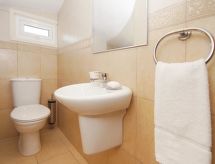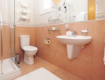 Maison individuelle, 4 pièces pour 6 personnes, 140 m2, confortable aménagement. Séjour/salle à manger avec TV régional, TV (satellite), DVD et table pour les repas. Non permis de fumer. Internet (Connexion WIFI). Chambre à coucher avec 1 lit double. Chambre à coucher avec 1 lit double. Chambre à coucher avec 2 lits normaux. Cuisine avec four à 4 plaques, four micro-ondes, four, table pour les repas, lave-vaisselle, réfrigérateur et congélateur. Salle de bains, douche/WC et WC séparés. Balcon, terrasse, jardinet, meubles de terrasse. Autres fournitures: coffre-fort, chaise haute pour enfant, sèche-cheveux, fer à repasser, lave-linge. 1 guest toilet. 1 family bathroom with bath tub. All bathrooms have with washing basins.- Caractéristiques de l'hébergement