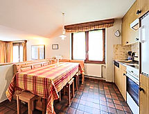 Apt 3 pièces 80 m2 au 2ème étage. Aménagement fonctionnel et confortable: séjour/salle à manger avec cheminée, table pour les repas, TV (câblée) et radio. Sortie sur le balcon. 1 chambre double avec 2 lits (90 cm, longueur 200 cm). 1 chambre avec 1 lit (90 cm, longueur 200 cm), 1 x 2 lits superposés (90 cm, longueur 200 cm), 1 lit gigogne (1 pers. 2 x 90 cm, longueur 200 cm). Cuisine ouverte (four, lave-vaisselle, 4 plaques vitrocéramiques, grille-pain, bouilloire électrique, congélateur, cafetière électrique, appareil à raclette, service à fondue (fondue au fromage)). Salle de bains, WC séparé. Grand balcon, situation sud et situation ouest. Mobilier de balcon. Très belle vue sur le Cervin. A disposition: sèche-cheveux. Internet (Connexion WIFI, gratuit). Veuillez noter: logement non-fumeur. Les animaux domestiques sont interdits.- Installations