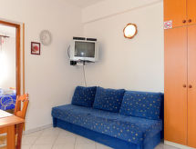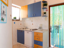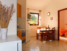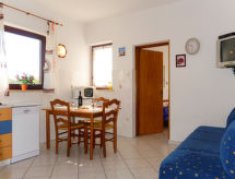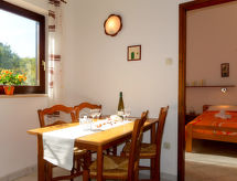 Immeuble "Radmila". Dans le hameau de Sveti Vid Dobrinjski, à 10 km du centre de Malinska, à 1 km du centre de Dobrinj, à 14.5 km du centre de Krk, situation tranquille, à 4 km de la mer, à 4 km de la plage, dans la verdure. En commun: terrain 2'000 m2 (clôturé) avec pelouse, piscine (8 x 4 m, profondeur 150 cm, disponibilité saisonnière: 15.Mar. - 15.Nov.). Douche extérieure, ping-pong, jardinet, terrasse, meubles de jardin, barbecue (balançoire). Infrastructures de la Maison: accès internet. Place de parking sur le terrain. Magasins 200 m, plage de rochers 4 km. Le propriétaire n'accepte pas les groupes de jeunes. Veuillez noter: le propriétaire habite dans la même maison. Aéroport 15 km de la maison.Interior