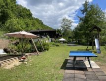 Maison 5 pièces 105 m2 sur 2 niveaux, sous-sol de plain-pied. Aménagement plaisant et avec beaucoup de bois: séjour/salle à manger 20 m2 avec TV (satellite) (écran plat). Sortie sur la terrasse. 1 chambre 9 m2 avec 1 lit double (180 cm, longueur 200 cm). Coin cuisine (4 plaques de cuisson, four, bouilloire électrique, cafetière électrique). Douche/WC. À l'étage supérieur: séjour/salle à manger 40 m2 avec cheminée et TV (satellite) (écran plat). Sortie sur le balcon. 1 chambre 11 m2 avec 1 lit double (180 cm, longueur 200 cm). 1 chambre 5 m2 avec 1 x 2 lits superposés (90 cm, longueur 200 cm). Coin cuisine (4 plaques de cuisson, four, bouilloire électrique, cafetière électrique). Douche/WC. Chauffage au gaz. Balcon 7 m2, petite terrasse 6 m2, jardin 150 m2, pelouse 50 m2. Meubles de terrasse, mobilier de balcon, chaises longues (2). A disposition: bois (en sus). Internet (Connexion WIFI, gratuit). Veuillez noter: maison non-fumeur. 2 animaux/ chiens autorisés. Il est possible de venir avec un troisième animal de compagnie à demande. NOTE: La maison familiale est la combinaison des deux appartements indépendants situés côte à côte, le DE5543.100.1 et le DE5543.100.2. L'accès à l'étage supérieur (structure en bois) se fait par un escalier extérieur.- Installations