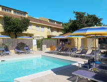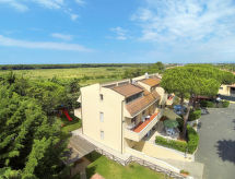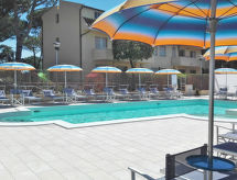 Résidence "Residence Riviera". 10 appartements dans la résidence. À 600 m du centre de Cecina Mare, en bordure de la localité, à 650 m de la mer. En commun: terrain 4'500 m2 (clôturé), arbres, piscine (12 x 5 m, disponibilité saisonnière: 21.Mai. - 02.Oct. horaires d'ouverture de la piscine: 09:30-19:00). Ping-pong, meubles de jardin, barbecue, espace de jeux pour les enfants. Infrastructures de la Maison: café, lave-linge (en commun, en sus). Place de parking sur le terrain. Magasins 700 m, plage de sable 650 m. Résidence avec portail électrique.Interior
