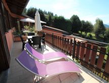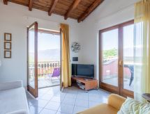 Apt 3 pièces 55 m2 au 2ème étage. Aménagement fonctionnel: séjour/salle à manger avec TV (satellite). Sortie sur la terrasse. 1 chambre double. 1 chambre avec 2 lits. Coin cuisine (4 plaques de cuisson, four, bouilloire électrique, congélateur, cafetière électrique). Douche/bidet/WC. 2 terrasses 10 m2. Meubles de terrasse, chaises longues (2). Vue éloignée sur le lac et les montagnes. A disposition: sèche-cheveux. Internet (Connexion WIFI, gratuit). CIR:012092-CIM-00038- Installations
