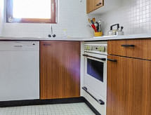 Apt 3 pièces 95 m2 au 1er étage, situation sud. Aménagement simple et fonctionnel: séjour/salle à manger avec table pour les repas et TV. Sortie sur le balcon, orientée sud. 1 chambre double avec 1 lit double (2 x 90 cm, longueur 200 cm). 1 chambre avec 1 lit (90 cm, longueur 200 cm), 1 x 2 lits superposés (90 cm, longueur 200 cm). Petite cuisine (3 plaques de cuisson, four, lave-vaisselle, grille-pain, bouilloire électrique, congélateur, cafetière électrique). Bain/WC, douche/WC. Balcon. Mobilier de balcon. Très belle vue sur le Cervin. A disposition: sèche-cheveux. Internet (Connexion WIFI, gratuit). Veuillez noter: logement non-fumeur. Les animaux domestiques sont interdits.- Caractéristiques de l'hébergement