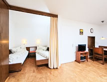 L'immeuble est situé à proximité immédiate du téléphérique du Torrent. Résidence "Ringstrasse (Utoring)". Dans la localité, à 500 m du centre, à 20 m des pistes de ski. Infrastructures de la Maison: bar, salon, ping-pong, salle de jeux, ascenseur, réduit pour bicyclettes, local pour les skis, chauffage central, lave-linge, sèche-linge (en sus). Service boulangerie et service boissons. Accès en voiture jusqu'à la maison (route de montagne). En hiver, merci de prévoir des chaînes, en hiver 4x4 recommandé. Place de parking près de la maison, parking public couvert à 50 m, en sus. Magasin d'alimentation, supermarché, restaurant, piscine 500 m, centre thermal 300 m. Tennis 500 m, téléphérique, remontées mécaniques, domaine skiable 20 m. Piste de luge, ski de fond 500 m, patinoire 1 km. Les domaines skiables de renommée sont facilement accessibles: Leukerbad Torrent. Région de randonnées: Gemmi 1 km. La maison se situe sur le versant boisé sud-ouest, directement à côté du téléphérique du Torrent. Seulement un petit escalier sépare la maison de la station en aval. Parking : hiver : place de parking pour 35CHF/semaine, box (garage) pour 70CHF/semaine, été : place de parking gratuite, box (garage) pour 35CHF/semaine. La location comprend la "Leukerbad Plus Card". Celle-ci permet l'utilisation gratuite du bus "Ringjet", l'accès gratuit au domaine de ski pour débutants "Snowpark Sportarena (Erli)", l'accès gratuit au centre sportif (badminton, tennis, squash, billard, tennis de table, patin à glace, football, futsal, mini-golf, etc), 15% de réduction sur le prix d'achat d'un pass pour le ski et la natation. Et 10% de réduction sur les abonnements et pass pour accéder aux thermes et emprunter les trains de montagne.Interior