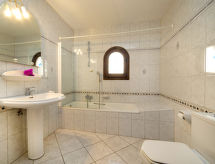 "Roberto", maison 3 pièces 90 m2. Aménagement rustique: séjour/salle à manger 25 m2 avec cheminée, TV (satellite) et Télévision numérique. Sortie sur la terrasse. 2 chambres doubles, chaque chambre avec: 1 grand-lit. Cuisine (4 plaques de cuisson, four, congélateur). Bain/WC. Vue panoramique sur la mer et les alentours. A disposition: lave-linge. Garage. Adapté(e) aux familles. AT-4181-A- Installations