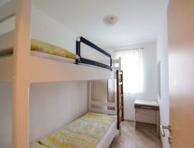Apt 3 pièces 47 m2 au 1er étage, situation nord. Séjour/salle à manger 32 m2 avec 1 divan-lit double, TV (satellite) et air-conditionné. Sortie sur le balcon. 1 chambre avec 1 lit double (2 x 80 cm, longueur 200 cm). 1 chambre avec 2 x 1 lits superposés. Cuisine ouverte (lave-vaisselle, 4 plaques vitrocéramiques, four micro-ondes, cafetière électrique). Douche/WC. Balcon 16 m2. Mobilier de balcon. Vue partielle sur la mer.- Installations