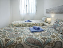 "Rosa Mar", apt 3 pièces 100 m2. Spacieux et clair, aménagement confortable et agréable: séjour/salle à manger avec Télévision numérique, air-conditionné et chauffage à air chaud. Sortie sur la terrasse. 1 chambre avec 1 grand-lit (160 cm, longueur 190 cm), douche/WC, air-conditionné et chauffage à air chaud. Sortie sur la terrasse. 1 chambre avec 2 lits (90 cm, longueur 190 cm). Grande cuisine (four, lave-vaisselle, 4 plaques vitrocéramiques, grille-pain, four micro-ondes, congélateur, cafetière électrique). Bain/bidet/WC. Grande terrasse. Meubles de terrasse. A disposition: lave-linge, fer à repasser, chaise haute pour enfant, lit bébé, sèche-cheveux. Internet (Connexion WIFI, gratuit). Veuillez noter: TV seulement ES. R000000001- Activités à proximité