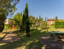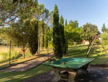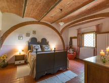 Domaine agricole. 8 appartements dans la même entité. Location composée d'un bâtiment principal et d'une annexe, à 9.8 km du centre de Peccioli, à 24 km du centre de Volterra, à 35 km du centre de San Gimignano, situation ensoleillée sur une colline, à 45 km de la mer. En commun: jardin (clôturé), piscine (20 x 8 m, profondeur 140 - 300 cm, disponibilité saisonnière: 01.Mai. - 30.Oct.). Douche extérieure, ping-pong, terrain de pétanque, meubles de jardin, barbecue, espace de jeux pour les enfants, entretien de la piscine par le propriétaire/jardinier. Infrastructures de la Maison: salon avec TV, Connexion WIFI, possibilité de chauffage uniquement du 15.04. au 01.11.. Petit-déjeuner possible (en sus). Accès en voiture jusqu'à la maison (800 m chemin non goudronné). Place de parking sur le terrain. Magasin d'alimentation 3.8 km, supermarché 3.8 km, restaurant 500 m, bar 1 km, plage de sable "Marina di Cecina, Vada, Tirrenia" 45 km, plage de galets "Castiglioncello" 60 km, centre thermal "Casciana Terme" 29 km. Terrain de golf (18 trous) 13 km. Attractions à proximité: Lajatico 21 km, Chianni 25 km, San Miniato 45 km, Pisa 55 km, Lucca 57 km, Bolgheri 62 km. Adapté à l'organisation d'évènements.Interior