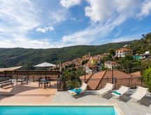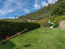 Belle résidence accueillante pour les enfants "Agriturismo Ca' di Nonni", 400 m au dessus du niveau de la mer, de 2 étages, environnée par les arbres et vignobles. 4 appartements dans la résidence. À 100 m du centre de Pietrabruna, en bordure de la localité, à 10 km du centre de San Lorenzo al Mare, à 16 km du centre d'Imperia, situation surélevée sur un versant, à 9.5 km de la mer, dans la verdure. En commun: beau jardin sur plusieurs niveaux entretenu, 1'000 m2 avec pelouse et plantes, pré, piscine (10 x 5 m, profondeur 120 cm, disponibilité saisonnière: 01.Mai. - 01.Nov.). Douche extérieure, ping-pong, jardinet, tonnelle, meubles de jardin, barbecue, espace de jeux pour les enfants (toboggan, balançoire), entretien de la piscine par le propriétaire/jardinier. Infrastructures de la résidence: salon avec TV, salle fitness, baby foot, réduit pour bicyclettes, terrasse ensoleillée, lave-linge (en commun), location de bicyclettes. Accès en voiture par un chemin raide, étroite de 20 m de long. Sentier en escalier jusqu'à la maison. Parking public 50 m possible dans la rue. Magasins 200 m, supermarché 10 km, café 200 m, arrêt du bus 150 m, plage de sable "San Lorenzo al Mare" 10 km, baignade en lac "Laghetti Torre Paponi" 5 km. Groupes de jeunes sur demande seulement. Veuillez noter: Déchargement et chargement des bagages à la location de vacances. Certaines parties de la maison sont fermées et inoccupées.Interior