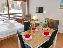 "Rosablanche D32" studio 25 m2 au 3ème étage. Aménagement agréable: séjour/salle à manger avec 1 lit gigogne (2 pers. 2 x 90 cm, longueur 190 cm), TV (câblée). Cuisine ouverte (lave-vaisselle, 2 plaques vitrocéramiques, grille-pain, four micro-ondes, service à fondue (fondue au fromage)). Bain/WC. Balcon, situation sud. Mobilier de balcon. Vue sur les pistes de ski. A disposition: sèche-cheveux. Internet (Connexion WIFI, gratuit). Veuillez noter: maison non-fumeur. Ascenseur D.- Installations