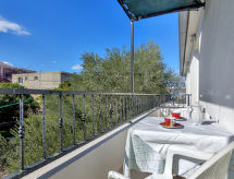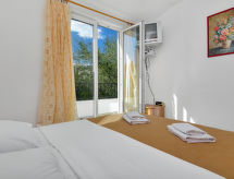 Studio 16 m2 au 2ème étage, situation ouest. Studio avec 1 grand-lit (160 cm, longueur 200 cm), TV (satellite) et air-conditionné. Sortie sur le balcon. Cuisine ouverte (2 plaques vitrocéramiques) avec table pour les repas. Douche/WC. Air-conditionné (en sus). Balcon 4 m2. Mobilier de balcon. A disposition: Internet (Connexion WIFI, gratuit). 1 animal/ chien autorisé.- Installations