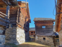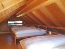 "Rustico Bel Panorama", maison 3 pièces. Spacieux, partiellement mansardée, aménagement simple et fonctionnel: salle à manger ouverte avec table pour les repas, TV (satellite), lecteur CD et poêle à bois. Sortie sur le jardin. Cuisine ouverte (Poêle à gaz, 4 feux, cafetière électrique, service à fondue (fondue au fromage)). Douche/WC. Chauffage au bois, chauffe eau. Énergie solaire. À l'étage supérieur: séjour/chambre à coucher ouvert avec 1 lit double (1 x 160 cm, longueur 200 cm), TV (satellite). Sortie sur le jardin. 2ème étage: galerie avec 4 lits (90 cm, longueur 200 cm). Petit jardin. Barbecue, chaises longues (2). Très belle vue panoramique sur les montagnes, la vallée et les alentours. A disposition: chaise haute pour enfant, lit bébé jusqu'à 2 ans (en sus). Veuillez noter: logement non-fumeur. 1 animal/ chien autorisé.- Installations