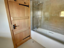 3 pièces cottage. Aménagement confortable et plaisant: 1 chambre double avec bain/douche/WC. 1 chambre double avec 2 lits et douche/WC. À l'étage supérieur: séjour/salle à manger avec poêle suédois, table pour les repas, TV et DVD. Cuisine (4 plaques de cuisson, four, lave-vaisselle, four micro-ondes, congélateur, gril). Jardin. Meubles de terrasse. Vue sur les alentours. A disposition: lave-linge. Internet (Connexion WIFI, gratuit). Veuillez noter: TV seulement EN.- Activités à proximité