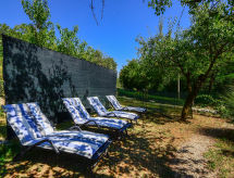Apt 4 pièces 100 m2 au 1er étage. Séjour/salle à manger 25 m2 avec TV (satellite) (écran plat), air-conditionné. Sortie sur la terrasse. 1 chambre avec 1 grand-lit (160 cm, longueur 190 cm). 1 chambre avec 2 lits (80 cm, longueur 190 cm). 1 chambre avec 1 divan-lit (120 cm, longueur 190 cm). Cuisine ouverte (4 plaques de cuisson, four, lave-vaisselle, four micro-ondes, congélateur, cafetière électrique). Sortie sur le balcon. WC séparé, bain/douche/bidet/WC. Balcon 4 m2, terrasse 15 m2. Meubles de terrasse, barbecue (portable), chaises longues. A disposition: lave-linge. Internet (Connexion WIFI, gratuit). 1 animal/ chien autorisé.- Caractéristiques de l'hébergement