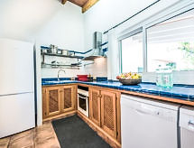 "Santa Eulalia", maison 3 pièces 110 m2, sous-sol de plain-pied. Logement idéal pour 4 adultes. Clair, rénovée, aménagement très agréable et de bon goût: grand séjour/salle à manger ouvert avec baie vitrée avec table pour les repas, TV, TV (satellite), écran plat, radio, chaîne stéréo, chauffage électrique et poêle à bois. Sortie sur le jardinet, sur la piscine. 1 grande chambre double avec baie vitrée avec 1 grand-lit (160 cm, longueur 190 cm), bain/douche/bidet/WC, chauffage électrique, air-conditionné et chauffage à air chaud. 1 grande chambre double avec baie vitrée avec 2 lits (100 cm, longueur 200 cm), chauffage électrique, air-conditionné et chauffage à air chaud. Cuisine ouverte (four, lave-vaisselle, 3 plaques vitrocéramiques, grille-pain, bouilloire électrique, four micro-ondes, congélateur, cafetière électrique). Bain/douche/bidet/WC. Chauffage électrique. Grande terrasse, grand jardin, pelouse. Meubles de terrasse, barbecue, chaises longues, loggia. Vue sur les montagnes et les alentours. A disposition: lave-linge, fer à repasser, sèche-cheveux. Internet (Connexion WIFI, gratuit). Veuillez noter: maison non-fumeur.- Caractéristiques de l'hébergement