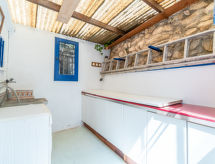 "Secret", maison 3 pièces 75 m2. Aménagement confortable et moderne: séjour/salle à manger avec cheminée (uniquement à titre de décoration), table pour les repas, Télévision numérique, air-conditionné et chauffage à air chaud. Sortie sur le jardinet. 1 chambre avec 1 grand-lit (135 cm, longueur 190 cm). 1 chambre avec 2 lits (90 cm, longueur 190 cm). Cuisine ouverte (four, lave-vaisselle, 3 plaques vitrocéramiques, four micro-ondes, cafetière électrique). Bain/bidet/WC. Chauffage à air chaud. Jardinet. Meubles de terrasse. Vue éloignée sur la mer. A disposition: lave-linge, fer à repasser, sèche-cheveux. HUTT051136- Installations
