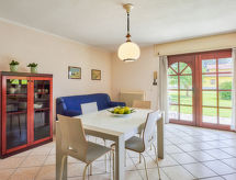 "Serena (LMZ180)", apt 4 pièces 60 m2, au rez-de-chaussée, situation sud-est. Clair, aménagement fonctionnel: séjour/salle à manger avec table pour les repas et TV (satellite). Sortie sur la terrasse. 1 chambre avec 1 grand-lit (160 cm). Chambre avec passage avec 1 lit. 1 petite chambre avec 2 lits. Cuisine ouverte (four, lave-vaisselle, 4 feux, grille-pain, congélateur, cafetière électrique). Douche/WC. Chauffage au gaz. Terrasse partiellement couverte. Meubles de terrasse, chaises longues (4), réduit. A disposition: chaise haute pour enfant, lit bébé jusqu'à 2 ans. Internet (Connexion WIFI, gratuit). Veuillez noter: maximum 1 animal/ chien autorisé. Entrée privée. CIR: 014057-CNI-00002- Installations