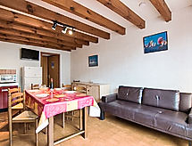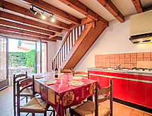 Maison mitoyenne 3 pièces 50 m2 sur 2 niveaux. Séjour/salle à manger avec TV et chaînes de TV internationales (écran plat). Sortie sur la terrasse. Coin cuisine (4 plaques de cuisson, mini-four, four micro-ondes). Douche, WC séparé. À l'étage supérieur: 1 chambre, mansardée avec 1 grand-lit (1 x 140 cm, longueur 190 cm). 1 chambre, mansardée avec 1 lit (90 cm, longueur 190 cm), 1 grand-lit (1 x 140 cm, longueur 190 cm). Terrasse. Meubles de terrasse, chaises longues (1). A disposition: Internet (Connexion WIFI, gratuit). Veuillez noter: maximum 1 animal/ chien autorisé. Détecteur de fumée.