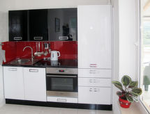 Apt 3 pièces 80 m2 au 1er étage. Séjour avec TV (satellite) (écran plat), air-conditionné. Sortie sur le balcon. 1 chambre avec 1 lit double, douche/WC et air-conditionné. Sortie sur le balcon. 1 chambre avec 1 lit, 1 lit double et air-conditionné. Sortie sur le balcon. Cuisine dans l'entrée (four, lave-vaisselle, 2 plaques vitrocéramiques, congélateur, cafetière électrique) avec table pour les repas. Douche/WC. Chauffage à air chaud. Balcon. Mobilier de balcon. Vue sur la mer. A disposition: Internet (Connexion WIFI, gratuit). Veuillez noter: logement non-fumeur. Maximum 2 animaux/ chiens autorisés.- Installations