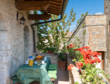 Maison 5 pièces 130 m2 sur 3 niveaux. 1 chambre avec 1 grand-lit (160 cm), douche/bidet/WC. Sortie sur le jardin. À l'étage supérieur: séjour/chambre à coucher avec 1 lit, 1 divan-lit et TV (satellite). Salle à manger avec table pour les repas. Sortie sur la terrasse. Cuisine ouverte (mini-four, lave-vaisselle, 4 feux, grille-pain, bouilloire électrique, four micro-ondes, cafetière électrique). Douche/bidet/WC. 2ème étage: 1 chambre avec 1 grand-lit (160 cm). 1 chambre avec 3 lits. Douche/bidet/WC. Chauffage au gaz. Mobilier confortable de style campagnard. A disposition: lave-linge, fer à repasser, chaise haute pour enfant, lit bébé jusqu'à 2 ans (en sus). Internet (Connexion WIFI, gratuit). Place de parking (3 Voitures) près de la maison. Veuillez noter: maison non-fumeur. 1 animal/ chien autorisé. Pas de connexion interne avec le rez-de-chaussée. Pas de frais supplémentaires obligatoires à régler sur place, sauf pour la taxe de séjour- Installations
