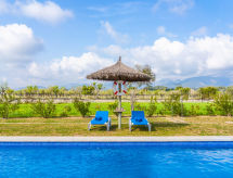 "Son Bordoi", maison 5 pièces 224 m2 sur 2 niveaux. Logement idéal pour 8 adultes. Spacieux, aménagement confortable et plaisant: 1 chambre double avec 1 grand-lit (160 cm, longueur 200 cm), TV (satellite), écran plat et ventilateur. Sortie sur le jardinet, sur la piscine. Grand séjour/salle à manger ouvert avec baie vitrée avec table pour les repas, TV (satellite), Télévision numérique, écran plat et poêle à bois. Sortie sur le jardinet, sur la piscine. Cuisine ouverte (4 plaques de cuisson, four, lave-vaisselle, grille-pain, four micro-ondes, congélateur, cafetière électrique). Sortie sur le jardinet, sur la piscine. Bains ou douche/WC. À l'étage supérieur: 1 grande chambre double avec 2 lits (90 cm, longueur 190 cm), TV (satellite), écran plat et ventilateur. 1 grande chambre double avec 1 lit double (160 cm, longueur 200 cm), TV (satellite), écran plat et ventilateur. 1 grande chambre double avec 2 lits (90 cm, longueur 190 cm), TV (satellite), écran plat et ventilateur. Bains ou douche/WC. Grand jardinet, pelouse, tonnelle. Meubles de terrasse, barbecue, chaises longues (8), loggia, place pour s'asseoir. Superbe vue panoramique sur les montagnes, la piscine, le jardin et les alentours. A disposition: lave-linge, fer à repasser, chaise haute pour enfant, lit bébé jusqu'à 2 ans, sèche-cheveux. Internet (Connexion WIFI, gratuit). Veuillez noter: maison non-fumeur. ETV5558- Caractéristiques de l'hébergement
