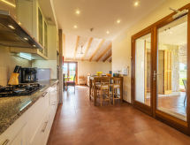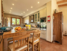 Moscari: Beau, grand domaine "Son Bordoi", environné par les arbres, prés et champs. En-dehors de la localité Moscari, situation tranquille, ensoleillée, dans la verdure. A usage privé: terrain à l'état naturel avec pelouse, pré, jardin propice à la détente, piscine rectangulaire (4 x 10 m, profondeur 100 - 200 cm, disponibilité saisonnière: 01.Jan. - 31.Dec.). Douche extérieure, ping-pong, jardinet, tonnelle, pergola, meubles de jardin, barbecue, entretien de la piscine par le propriétaire/jardinier. Infrastructures de la Maison: accès internet, Connexion WIFI, chauffage central, lave-linge. Place de parking près de la maison sur le terrain. Magasins 4 km, magasin d'alimentation 4 km, bar 4 km, boulangerie 4 km, café 4 km, cyber café 4 km, biergarten 4 km, plage de sable "Playa d'Alcudia" 20 km, plage de galets "Playa d'Aucanada" 22 km. Région de randonnées: Fonts Ufanes 6 km. Veuillez noter: voiture recommandée. Équipement pour bébés sur demande (inclus). Bien convenant à 8 adultes. Le propriétaire n'accepte pas les groupes de jeunes. Sur le terrain des animaux. Déchargement et chargement des bagages à la location de vacances. Aéroport 48 km de la maison.Interior