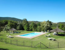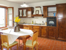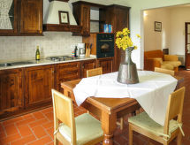 Exploitation agricole "Villetta di Monterufoli", environné par les arbres, prés, champs et vignobles. 3 maisons dans la résidence. 4 appartements dans la résidence. À 6 km du centre de Canneto, à 10 km du centre de Monteverdi Marittimo, à 25 km du centre de Castagneto Carducci, à 28 km de la mer. En commun: terrain 900 ha avec plantes et arbres, champ, piscine (17 x 7 m, disponibilité saisonnière: 23.Mai. - 25.Sep.). Bassin pour les enfants, tennis, ping-pong, basket. Infrastructures de la Maison: réception, restaurant, lave-linge (en commun, en sus). Accès en voiture (2 km chemin non goudronné). Place de parking sur le terrain. Magasins 6 km, supermarché 25 km, plage de sable 28 km.Interior