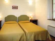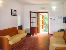 "Sorbo", apt 3 pièces 65 m2 au 1er étage. Aménagement fonctionnel: séjour/salle à manger avec table pour les repas et TV (satellite). 1 chambre avec 1 lit double (160 cm). 1 chambre avec 2 lits (80 cm). Cuisine ouverte (4 plaques de cuisson, four, bouilloire électrique, cafetière électrique). Douche/WC. Chauffage. Petit jardinet. Meubles de terrasse. A disposition: moustiquaire, lit bébé. Internet (Connexion WIFI, gratuit). Veuillez noter: logement non-fumeur. Maximum 1 animal/ chien autorisé. Entrée privée. L'appartement est situé dans la dépendance 'Casa dell Guardie', à environ 1 km du domaine avec piscine, pelouse, court de tennis, terrain de basket et tennis de table.- Installations