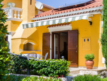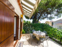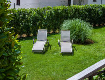 Apt 2 pièces 45 m2, au rez-de-chaussée, situation sud-ouest. Séjour/salle à manger 25 m2 avec 1 divan-lit (140 cm, longueur 200 cm), TV (satellite) et air-conditionné. Sortie sur la terrasse. 1 chambre avec 1 lit double (2 x 90 cm, longueur 200 cm). Cuisine ouverte (2 plaques de cuisson, four, congélateur). Bain/WC. Air-conditionné (en sus). Terrasse 20 m2. Meubles de terrasse. A disposition: Internet (Connexion WIFI, gratuit).- Installations
