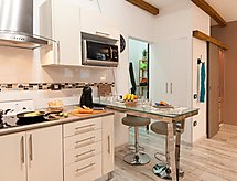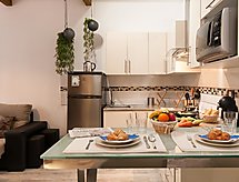 Apt "La Barca", 2 pièces pour 2 personnes, 40 m2, au rez-de-chaussée, simple et confortable aménagement. Séjour/salle à manger avec TV régional, TV (satellite), TV (câblée) et DVD. Non permis de fumer. Internet (Connexion WIFI). Chambre à coucher avec 1 lit double. Cuisine ouverte avec four à 2 plaques, four micro-ondes et coin repas. Douche/WC. Autres fournitures: coffre-fort, chaise haute pour enfant, sèche-cheveux, fer à repasser, lave-linge, sèche-linge. Wi-Fi (en sus: 6 euros / jour) à payer sur place. 2018/11387- Caractéristiques de l'hébergement