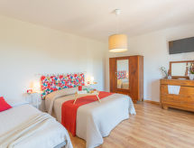 "Sunflower (ANO101)", maison jumelée 4 pièces 130 m2 sur 2 niveaux. Clair, aménagement rustique: 1 chambre avec 1 lit double et douche/WC. Cuisine/séjour (4 plaques de cuisson, four, congélateur) avec table pour les repas, cheminée et TV. Sortie sur la terrasse. Chauffage, air-conditionné. À l'étage supérieur: 1 chambre avec 1 lit et 1 lit double. Sortie sur le balcon. 1 chambre avec 1 lits. Douche/WC. Sol en pierres naturelles. Terrasse couverte, pelouse 150 m2. Meubles de terrasse. Vue panoramique. A disposition: lave-linge. Internet (Connexion WIFI, en sus). Veuillez noter: maison non-fumeur. Entrée privée. 069046BEB0027- Installations