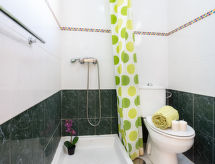 Maison jumelée 4 pièces 180 m2. Aménagement fonctionnel: séjour avec TV. Grande cuisine (four, 4 plaques vitrocéramiques, grille-pain, bouilloire électrique, four micro-ondes) avec table pour les repas. Sortie sur la terrasse. Douche/WC. Pas de chauffage. À l'étage supérieur: 1 chambre avec 1 lit double (160 cm, longueur 200 cm). 1 chambre avec 2 lits (90 cm, longueur 190 cm). 1 chambre avec 2 lits (90 cm, longueur 190 cm). Bain/bidet/WC. Meubles de terrasse, chaises longues. Vue sur la mer. A disposition: lave-linge, fer à repasser, chaise haute pour enfant, lit bébé jusqu'à 2 ans, sèche-cheveux. Internet (Connexion WIFI). Veuillez noter: maison non-fumeur. Maximum 2 animaux/ chiens autorisés. Extincteur. A-38-4-0004441- Caractéristiques de l'hébergement