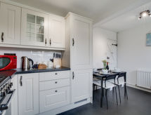 3 pièces cottage sur 2 niveaux. Spacieux et clair, aménagement confortable et de bon goût: séjour ouvert avec TV, écran plat et DVD. Cuisine ouverte (4 plaques de cuisson, four, four micro-ondes, congélateur) avec table pour les repas. Bain/douche/WC. À l'étage supérieur: 1 chambre double avec 1 lit double. 1 chambre avec 2 lits. Chauffage. Meubles de terrasse. A disposition: lave-linge. Internet (Connexion WIFI, gratuit). Station d'accueil iPod. Veuillez noter: maison non-fumeur. TV seulement EN.- Caractéristiques de l'hébergement