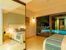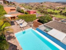 Grande villa, récente, moderne "Salobre Villa 6". Infrastructures de la maison: air-conditionné, lave-linge (à usage privé). Accès et parking: parking près de la maison, parking réservé, garage individuel. Accès en voiture pendant toute l'année. Voiture recommandée. Position: au centre de Salobre Golf Resort, dans le quartier de Maspalomas, en-dehors de Meloneras 7km, en position tranquille, surélevée, ensoleillée dans un quartier résidentiel. Vue de la maison sur les montagnes et la localité. Alentours de la maison: terrain (à usage privé, 360 m2, clôturé), jardin (à usage privé), pré (à usage privé), piscine (à usage privé, chauffée, longueur 8 m x largeur 3 m, ouvert du 01.01. jusqu'au 31 .12.). Infrastructure et distances: magasins 800 m, magasin d'alimentation 800 m, supermarché 2.5 km, restaurant 100 m, plage de sable 3 km, terrain de golf 50 m. Veuillez noter, a proximité: un aéroport à 25 km. Chauffage de la piscine : 50€/nuit en sus, à payer sur place.Interior