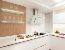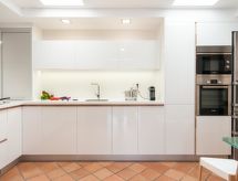 Maison individuelle, 4 pièces pour 6 personnes, 120 m2 sur 2 niveaux, confortable et moderne aménagement. Séjour/salle à manger avec TV (satellite), DVD, chaîne-hifi et table pour les repas. Non permis de fumer. Internet (Connexion WIFI). Chambre à coucher avec 1 lit double. Chambre à coucher avec 2 lits normaux. Chambre à coucher avec 1 grand-lit. Cuisine avec four à 4 plaques, four micro-ondes, four, table pour les repas, lave-vaisselle, réfrigérateur et congélateur. Bain/WC, douche/WC et bain/douche/WC. Balcon, terrasse, meubles de terrasse 6 chaises longues. Autres fournitures: coffre-fort, chaise haute pour enfant, sèche-cheveux, fer à repasser, lave-linge. 2016/3503- Caractéristiques de l'hébergement