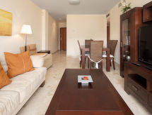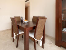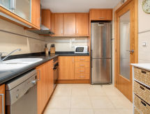 Belle, grande petite résidence "Tamarindo". À 13 km du centre de Dénia, situation tranquille, ensoleillée, à 20 m de la mer, à 20 m de la plage, accès direct à la plage. En commun: grand, beau jardin entretenu avec pelouse et arbres, piscine (60 x 30 m, profondeur 80 - 210 cm, disponibilité saisonnière: 01.Jan. - 31.Dec.) avec marches intérieures. Piscine de forme irrégulière. Bassin pour les enfants, douche extérieure, espace de jeux pour les enfants (toboggan, balançoire). A usage privé: terrasse (30 m2). Infrastructures de la Maison: bar, ascenseur. Place de parking No 28. Magasins 550 m, supermarché 3 km, restaurant 300 m, plage de sable "Playa Les Deveses" 20 m. Le propriétaire n'accepte pas les groupes de jeunes.Interior