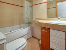 "Tamarindo", apt 3 pièces 100 m2. Spacieux et clair, aménagement très confortable et agréable: séjour/salle à manger avec Télévision numérique, air-conditionné et chauffage à air chaud. Sortie sur la terrasse. 1 chambre avec 1 grand-lit (160 cm, longueur 200 cm), bain/WC, air-conditionné et chauffage à air chaud. 1 chambre avec 1 x 2 lits superposés (80 cm, longueur 180 cm), air-conditionné et chauffage à air chaud. Cuisine (four, lave-vaisselle, 4 plaques vitrocéramiques, grille-pain, bouilloire électrique, four micro-ondes, congélateur, cafetière électrique). Douche/WC. Grande terrasse 20 m2. Meubles de terrasse. Très belle vue sur la mer, la piscine et le jardin. A disposition: lave-linge, fer à repasser, chaise haute pour enfant, lit bébé, sèche-cheveux. Internet (Connexion WIFI, gratuit). Place de parking No 28. Veuillez noter: TV seulement ES. Nº71389- Activités à proximité