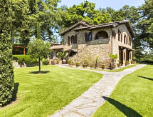 Maison 8 pièces 300 m2 sur 2 niveaux, au rez-de-chaussée. Aménagement agréable et à l'ancienne: séjour/salle à manger avec cheminée et TV. Sortie sur le jardin. Séjour/chambre à coucher avec 1 lit double, cheminée et TV. Sortie sur le jardin. 1 chambre double. Sortie sur le jardin. 1 chambre avec 1 lit. Cuisine (four, lave-vaisselle) avec table pour les repas. 2 douches/bidet/WC. Chauffage au gaz. À l'étage supérieur: séjour/salle à manger avec cheminée et TV (satellite). 3 chambres doubles. Coin cuisine (four) avec table pour les repas. Douche/bidet/WC. Chauffage au gaz. Jardin. Meubles de terrasse. Belle vue sur les alentours. A disposition: lave-linge. Internet (Connexion WIFI, gratuit). Place de parking près de la maison.- Installations