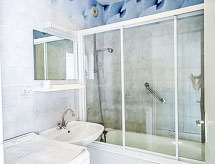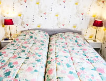 Apt 2 pièces 45 m2 au 2ème étage. Clair, aménagement fonctionnel: séjour/salle à manger avec baie vitrée avec 1 divan-lit (140 cm, longueur 190 cm), TV. Sortie sur la terrasse. 1 chambre avec 2 lits (90 cm, longueur 190 cm). Cuisine (2 plaques de cuisson, grille-pain, bouilloire électrique, combiné micro-ondes). Salle de bains, WC séparé. Chauffage électrique. Terrasse couverte. Meubles de terrasse. Vue panoramique sur la mer. A disposition: lave-linge. Internet (Connexion WIFI, en sus). Garage No 21. Veuillez noter: logement non-fumeur. Détecteur de fumée.- Caractéristiques de l'hébergement