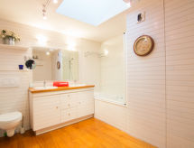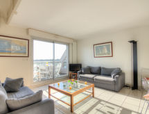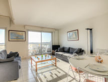 Apt 2 pièces 72 m2 sur 2 niveaux au 4ème étage, situation est. Aménagement confortable: séjour/salle à manger avec 1 divan-lit double (1 x 140 cm, longueur 190 cm), TV. Sortie sur la terrasse. Coin cuisine (4 plaques de cuisson, four, lave-vaisselle, grille-pain, bouilloire électrique, four micro-ondes, congélateur). WC séparé. À l'étage supérieur: galerie avec 2 lits (80 cm, longueur 200 cm). 1 chambre avec 1 grand-lit (1 x 160 cm, longueur 200 cm). Bain/WC. Chauffage électrique. Terrasse. Meubles de terrasse. Belle vue sur la mer. A disposition: lave-linge, sèche-linge. Internet (Connexion WIFI, gratuit). Place de parking No 17. Veuillez noter: logement non-fumeur parking pour 1 petite voiture. Détecteur de fumée.- Caractéristiques de l'hébergement