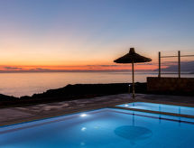 "Thea", villa 4 pièces 120 m2. Spacieux et clair, aménagement très confortable et luxueux: séjour/salle à manger ouvert avec 2 divans-lits, cheminée, table pour les repas, TV (satellite) et air-conditionné. Sortie sur la véranda, sur la piscine. 1 chambre double avec 2 lits, TV (satellite) et air-conditionné. Sortie sur le jardin, sur la piscine. Grande cuisine (4 plaques de cuisson, four, lave-vaisselle, grille-pain, four micro-ondes, congélateur, cafetière électrique). Sortie sur la véranda, sur la piscine. Bain/WC. À l'étage supérieur: 2 chambres doubles, chaque chambre avec: 1 lit double, salle de bains, TV (satellite) et air-conditionné. Sortie sur la véranda. Très belle vue panoramique sur la mer et les alentours. A disposition: lave-linge, coffre-fort, fer à repasser, sèche-cheveux. Internet (Connexion WIFI, gratuit). Adapté(e) aux familles. 1041K122K2675901- Installations