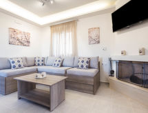Triopetra à 10 km de Akoumia: Belle villa moderne, luxueuse "Thea", 120 m au dessus du niveau de la mer, année de construction 2017. Dans le bas de la station d'Akoumia, en bordure de la localité, à 18 km du centre de Spili en-dehors de la localité, à 45 km du centre de Rethymno, excellente situation: centrale mais tranquille, zone avec peu de trafic, à 2 km de la mer, à 2 km de la plage. A usage privé: terrain 120 m2 (clôturé), piscine à l'abri des regards (45 m2, disponibilité saisonnière: 01.Avr. - 31.Oct.). Douche extérieure, meubles de jardin, barbecue. Change de linge 2 fois par semaine. Changementde linge de toilette 2 fois par semaine. Place de parking (pour 3 voitures) près de la maison. Magasins 10 km, supermarché 10 km, restaurant 1 km, bar 10 km, boulangerie 10 km, café 2 km, plage de sable "Triopetra" 2 km. Attractions à proximité: Phaistos Minoan Palace 30 km, Agia Galini 12 km, Agios Pavlos 3 km, Preveli Beach 7 km, Matala 30 km. Veuillez noter: voiture recommandée. "L´appartement se trouve dans une zone de circulation limitée".Interior