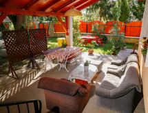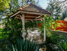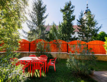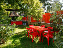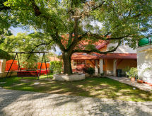 Balatonberény à 15 km de Keszthely: Grand immeuble de 2 étages. Dans la localité, à 400 m du lac. En commun: terrain 2'900 m2 (clôturé), jardin pelouse et arbres. Jardinet, four / barbecue en dur. Infrastructures de la Maison: Connexion WIFI, lave-linge (en sus). Magasin d'alimentation 300 m, restaurant 200 m, plage de gazon 400 m, plage naturiste 600 m. Piste cyclable 100 m. Les lacs connus sont facilement accessibles: Thermal Hévíz 18 km.Interior