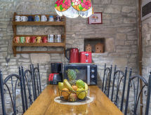 Maison individuelle "Toni", de 2 étages. Dans le hameau de Butkovići, à 7 km du centre de Vodnjan, à 12 km de la mer. A usage privé: terrain 500 m2 (clôturé), pelouse et arbres, piscine rectangulaire (5 x 4 m, profondeur 130 cm, disponibilité saisonnière: 06.Mai. - 07.Oct.). Douche extérieure, terrasse (20 m2), meubles de jardin, barbecue. Infrastructures de la Maison: accès internet, lave-linge. Place de parking (pour 2 voitures) sur le terrain. Magasins 1.5 km, plage de graviers 20 km, plage de rochers 12 km. Certaines parties de la maison sont fermées et inoccupées.Interior