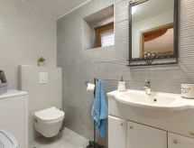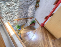 Maison 3 pièces 73 m2 sur 2 niveaux. Séjour/salle à manger avec 1 divan-lit double, cheminée et TV (satellite) (écran plat). Cuisine ouverte (lave-vaisselle, 2 plaques à induction, grille-pain, bouilloire électrique, four micro-ondes, congélateur, cafetière électrique). WC séparé. À l'étage supérieur: (escalier en colimaçon) entrée avec air-conditionné. 1 chambre avec 1 grand-lit. 1 chambre avec 2 lits. Douche/WC. Chaises longues. A disposition: fer à repasser, lit bébé, sèche-cheveux. Internet (Connexion WIFI, gratuit). Veuillez noter: maison non-fumeur. Maximum 2 animaux/ chiens autorisés.- Installations