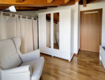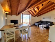 Apt 3 pièces 75 m2, sous le toit, situation ouest. Clair, partiellement mansardé, aménagement moderne et de style: séjour/salle à manger avec table pour les repas et TV (satellite). Sortie sur le balcon. 1 chambre double. Sortie sur le balcon. 1 chambre avec 1 x 2 lits superposés. Sortie sur le balcon. Cuisine ouverte (four, lave-vaisselle, 4 plaques vitrocéramiques, grille-pain, bouilloire électrique, four micro-ondes, cafetière électrique). Bain/WC, douche/WC. Chauffage au gaz. Sol en parquet. Grand balcon 30 m2, petit balcon. Mobilier de balcon, chaises longues (2). Très belle vue sur le lac. A disposition: lave-linge, chaise haute pour enfant, lit bébé. Internet (Connexion WIFI, gratuit). Place de parking (1 Voiture). Veuillez noter: logement non-fumeur. Maximum 1 animal/ chien de petite taille autorisé. Entrée privée. 012114-CNI-00060- Caractéristiques de l'hébergement