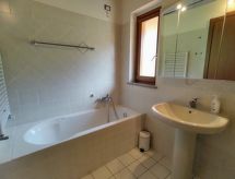 Petite résidence moderne "Torre del Lago", de 3 étages. 5 appartements dans la résidence. Dans le quartier de Musadino, à 2.6 km du centre de Porto Valtravaglia, à 31 km du centre de Lugano, à 33 km du centre de Varese, sur un versant, dans un quartier résidentiel, à 2.6 km du lac. En commun: terrain 750 m2 (clôturé) avec pelouse et plantes, piscine (8 x 4 m, profondeur 140 cm, disponibilité saisonnière: 01.Jun. - 15.Sep.). Douche extérieure, terrasse, meubles de jardin, entretien de la piscine par le propriétaire/jardinier. Sentier en escalier jusqu'à la maison. Supermarché 2.5 km, gare ferroviaire "Porto Valtravaglia" 3 km, plage de graviers "Punta Molino" 2.6 km, piscine couverte 11 km. Marina 2.6 km, terrain de golf (18 trous) 23 km, train de montagne 10 km.Interior