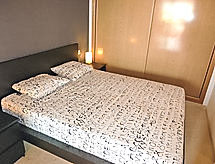 Apt 3 pièces 90 m2, en sous-sol. Clair, aménagement confortable et agréable: séjour/salle à manger avec Télévision numérique, écran plat, chauffage électrique et air-conditionné. Sortie sur la terrasse. 1 chambre avec 2 lits gigognes (2 x 90 cm). 1 chambre avec 1 grand-lit. Sortie sur la terrasse. Cuisine ouverte (four, lave-vaisselle, 4 plaques vitrocéramiques, four micro-ondes). Douche/WC, bains/WC ou douche/WC, balnéo. Grande terrasse 40 m2. Vue sur la mer, les montagnes et les alentours. A disposition: lave-linge. VFT/MA/5908- Installations